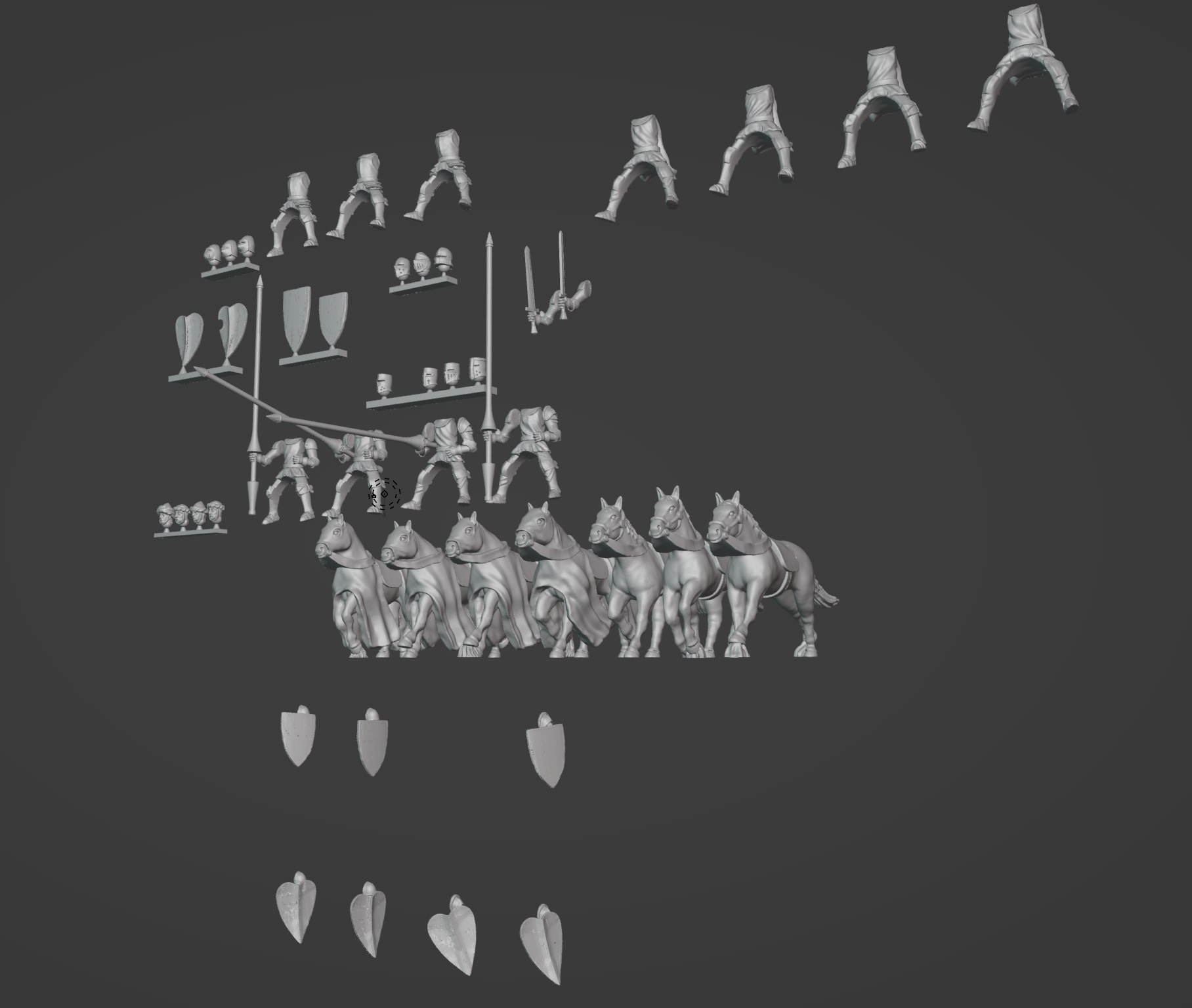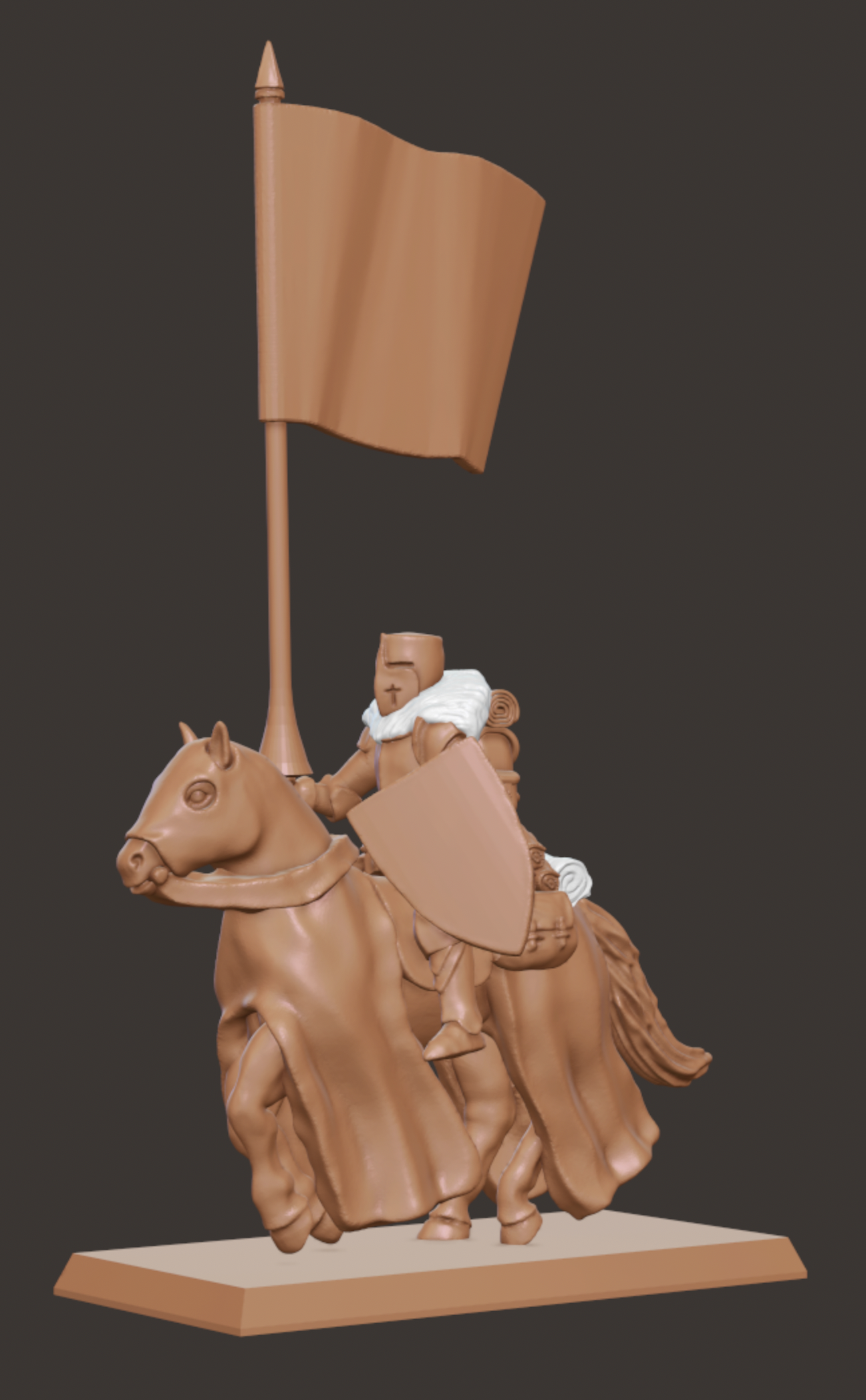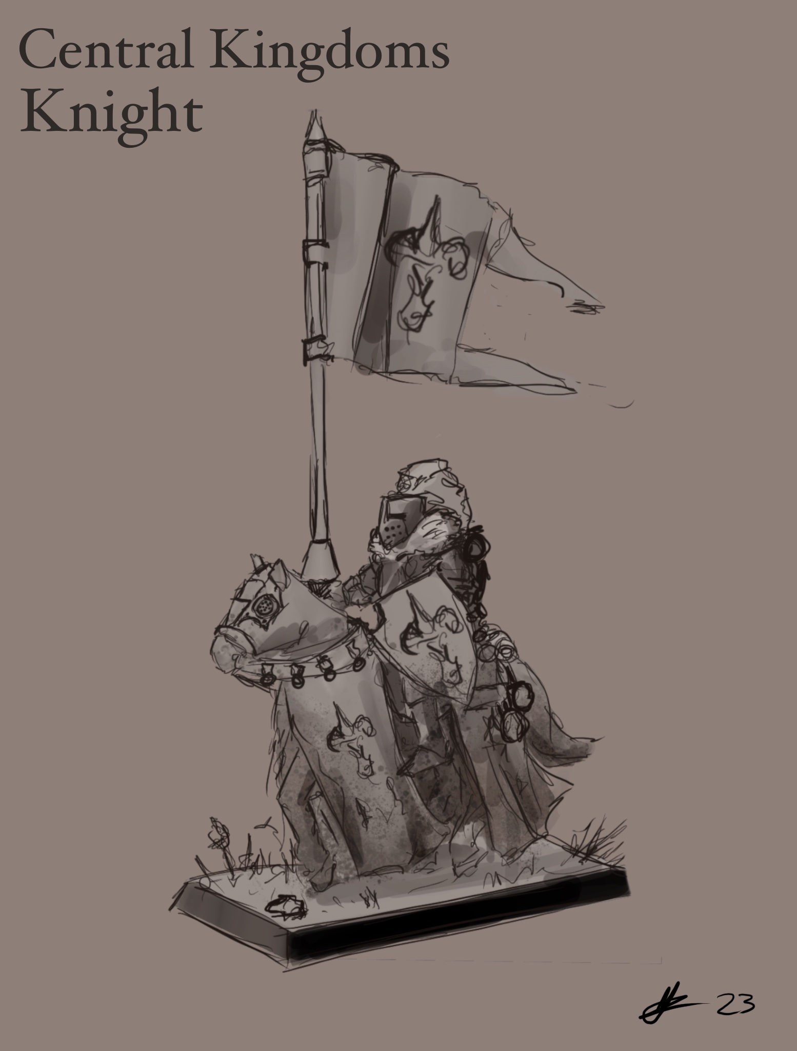 Once that was done, I took a rough screenshot into Procreate to sketch out the details that I wanted to see. I focused on surface details like armour, Chivalric iconography, basing details and more. I’ve got a lot of units to make, and nearly all of them will require concepts in some shape or form, so I can’t go into too much detail here, but the form exist, the details exist and this is more than enough for me to go on and build my own 3D models for both the digital game, and for printing for tabletop.