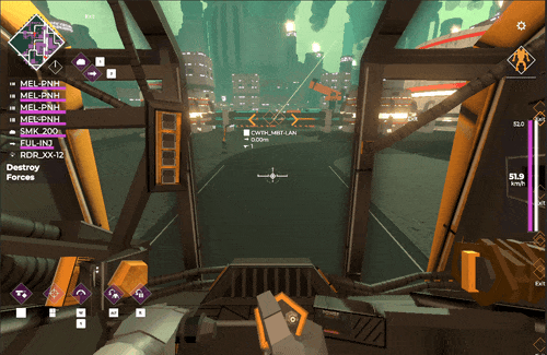 One other thing I’ve done here is use a single texture sheet for all the weapons, and the hangar environment. This cuts down on draw calls significantly, but also unifies the look and keeps the hangar dim, so that the player’s unit can stand out. Being able to check off so many things with one relatively simple choice is how I generally prefer to optimise my games.