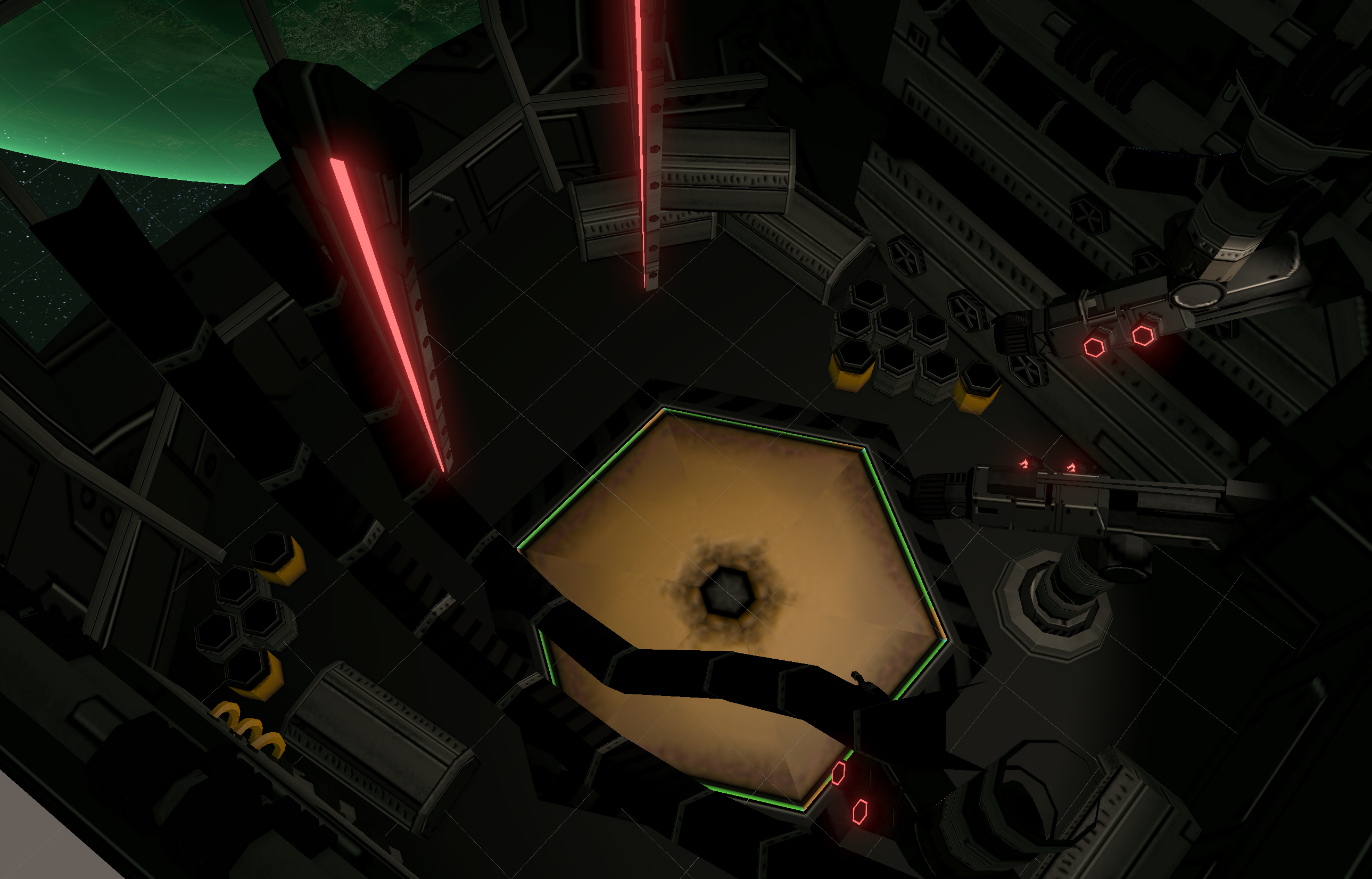 I’ve also spent a bunch of time working on the hangar environment. Coming into making this I was mostly unsure what I wanted, with only two things I knew for sure: That the planet should be in view, and that it should feel pretty tight.