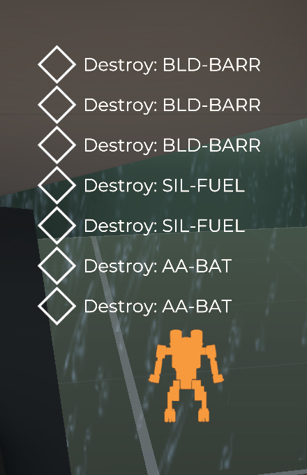 This week also saw me adding some basic UI elements for objective UI, and for tracking components that aren’t just enemies in worldspace. Turns out sometimes things are as simple as you’d expect. Target buildings are handled the same as units, controlled by the same systems (albeit without some functions, like movement… though…. moving building boss you say?….) So, as long as they get initialised along with all the enemies, boom, target icons. (keen eyed readers will see an exo-paper-doll icon next to the unit. That’s just me being lazy, each “base-unit-data” entry has an optional icon that I’ve not yet set.)